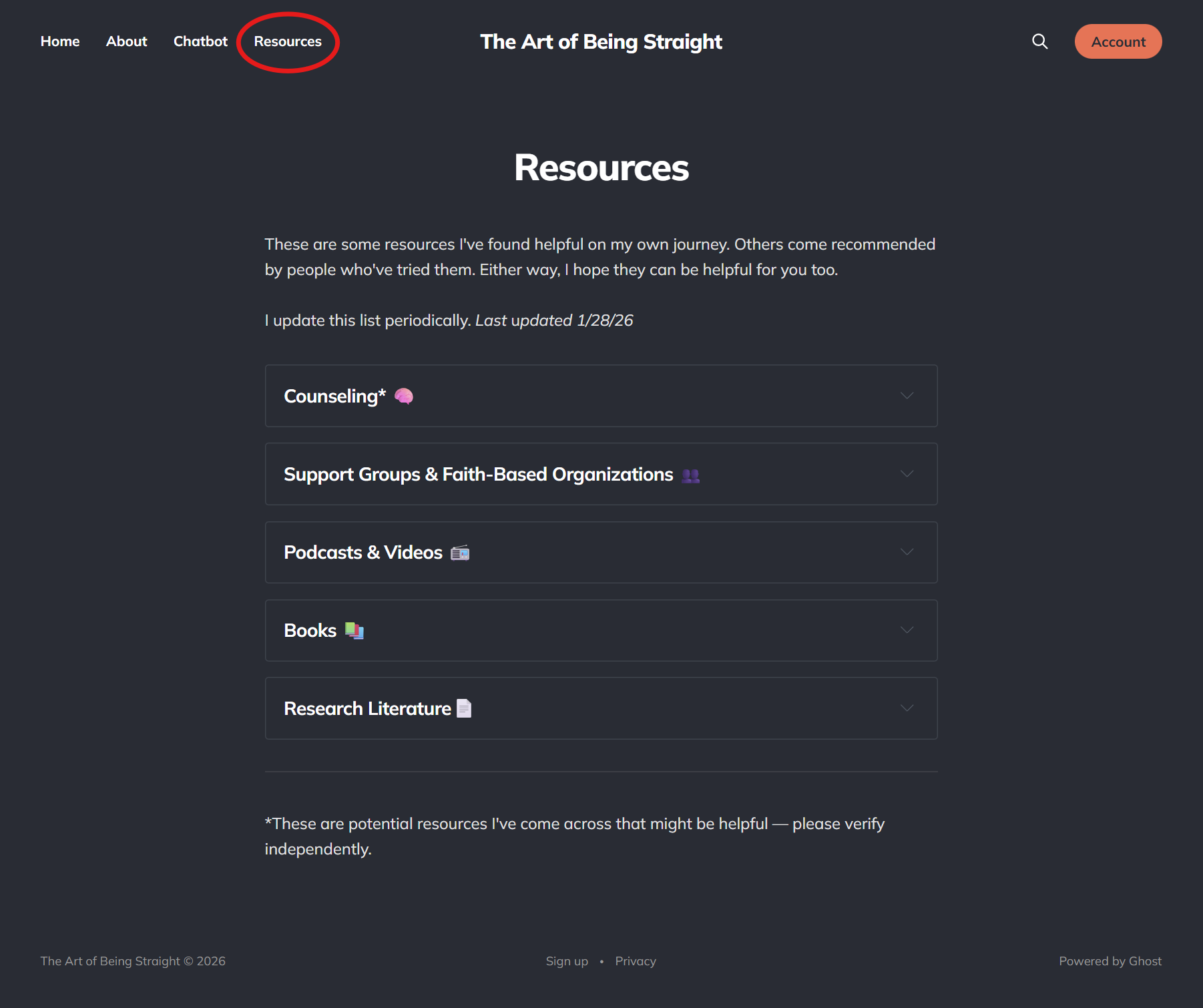 And in that spirit, I'm doubling down on making this site as helpful as it can be. Last week, I launched an AI chatbot to help answer questions about same-sex attraction. (It's still a work in progress and I welcome all feedback!). This week, I'm adding a new Resources page to the website.