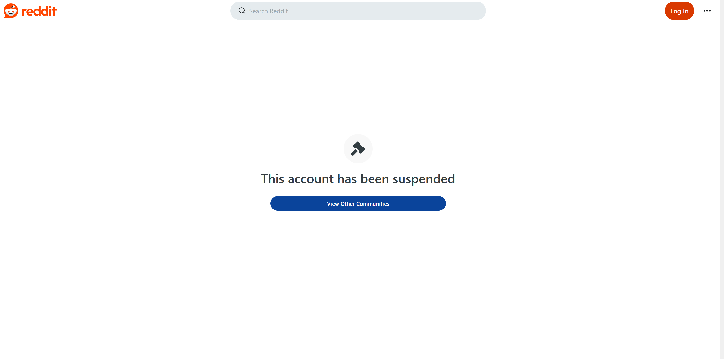 When logged out, I tried to view my profile and this is what I found: my account had been suspended.